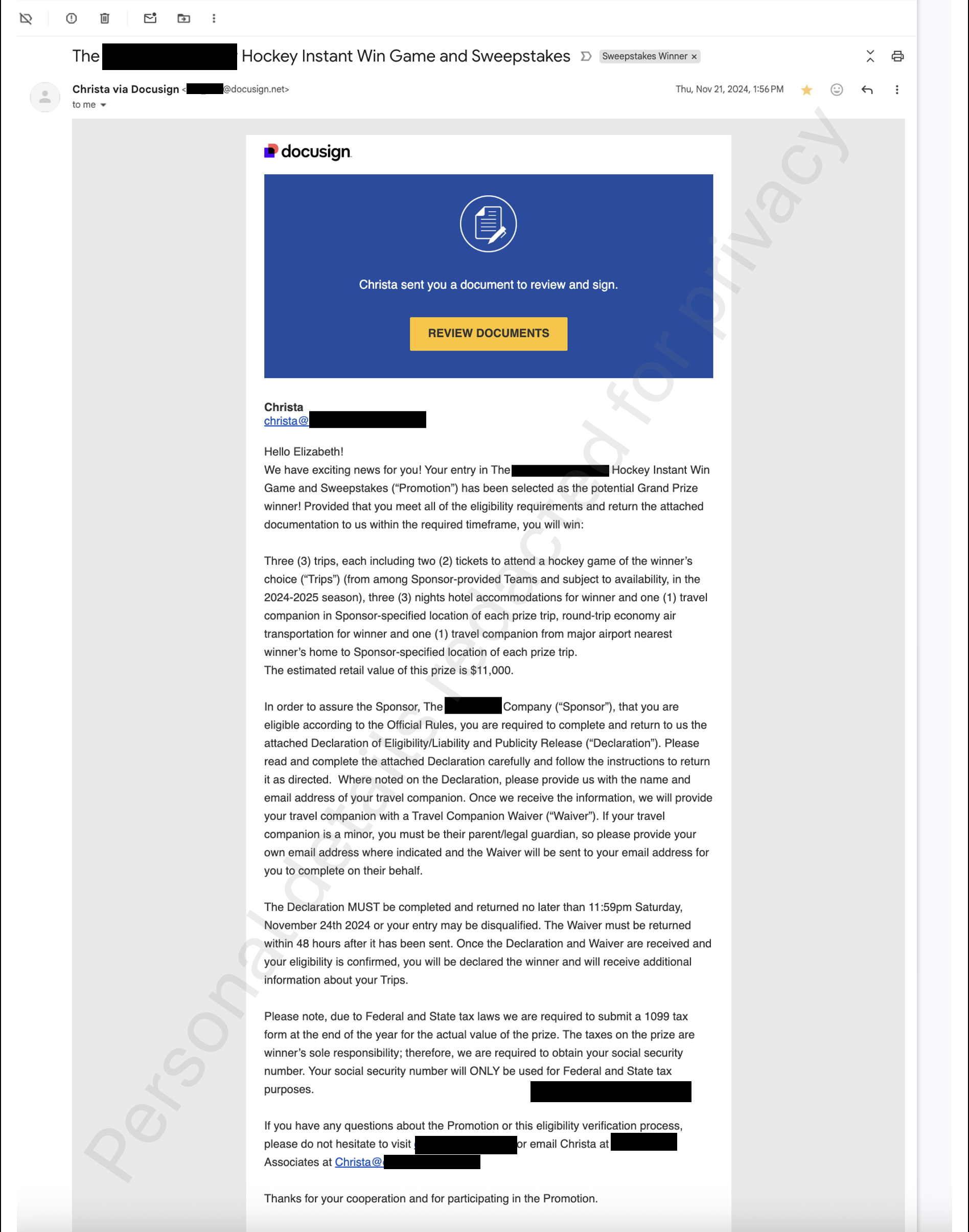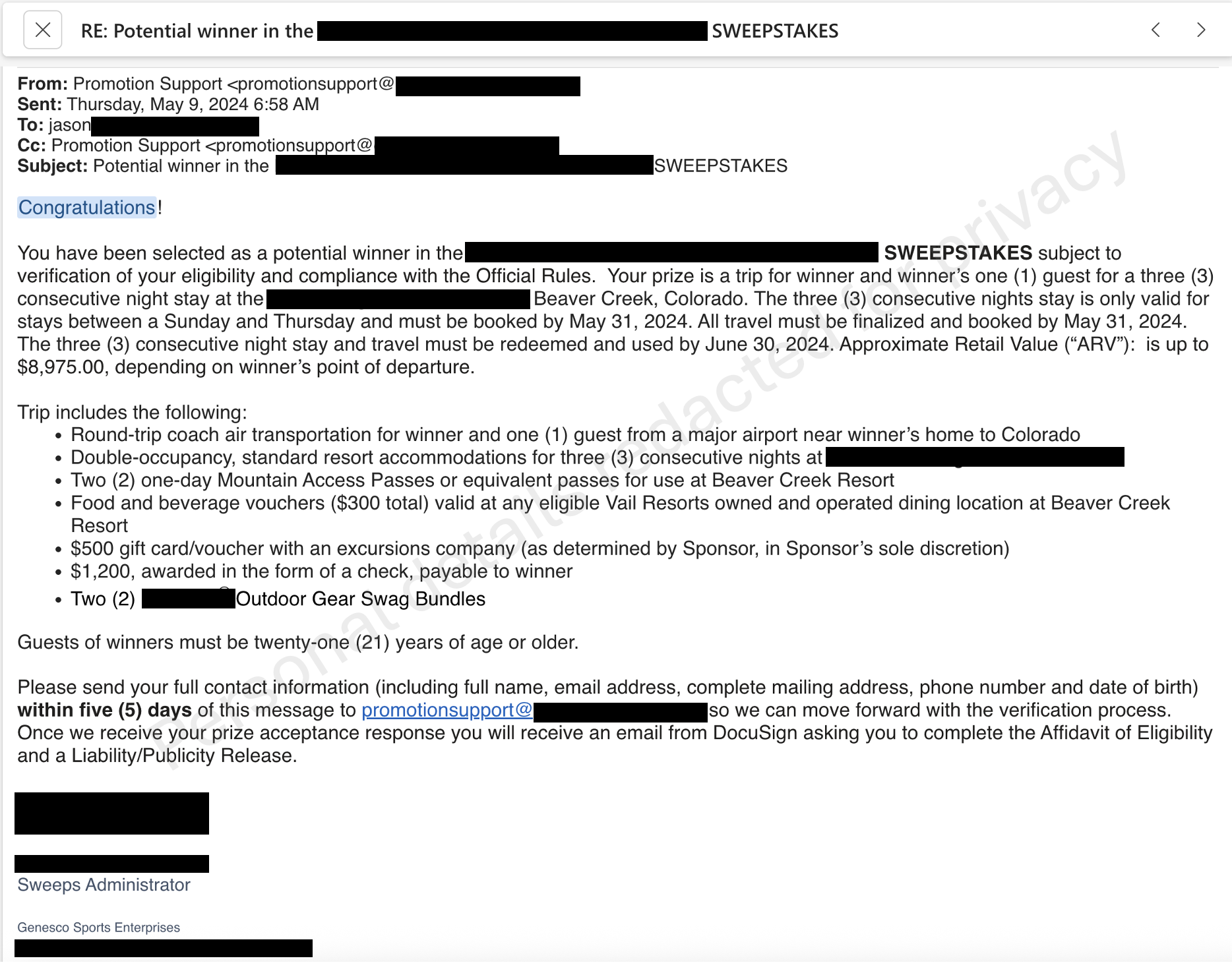 They pressure you urgently and things feel off. This is a big one, you should never feel like you urgently need to provide information, I’ve seen this on some smaller instagram sweepstakes before. It’s ok to question the sponor.
